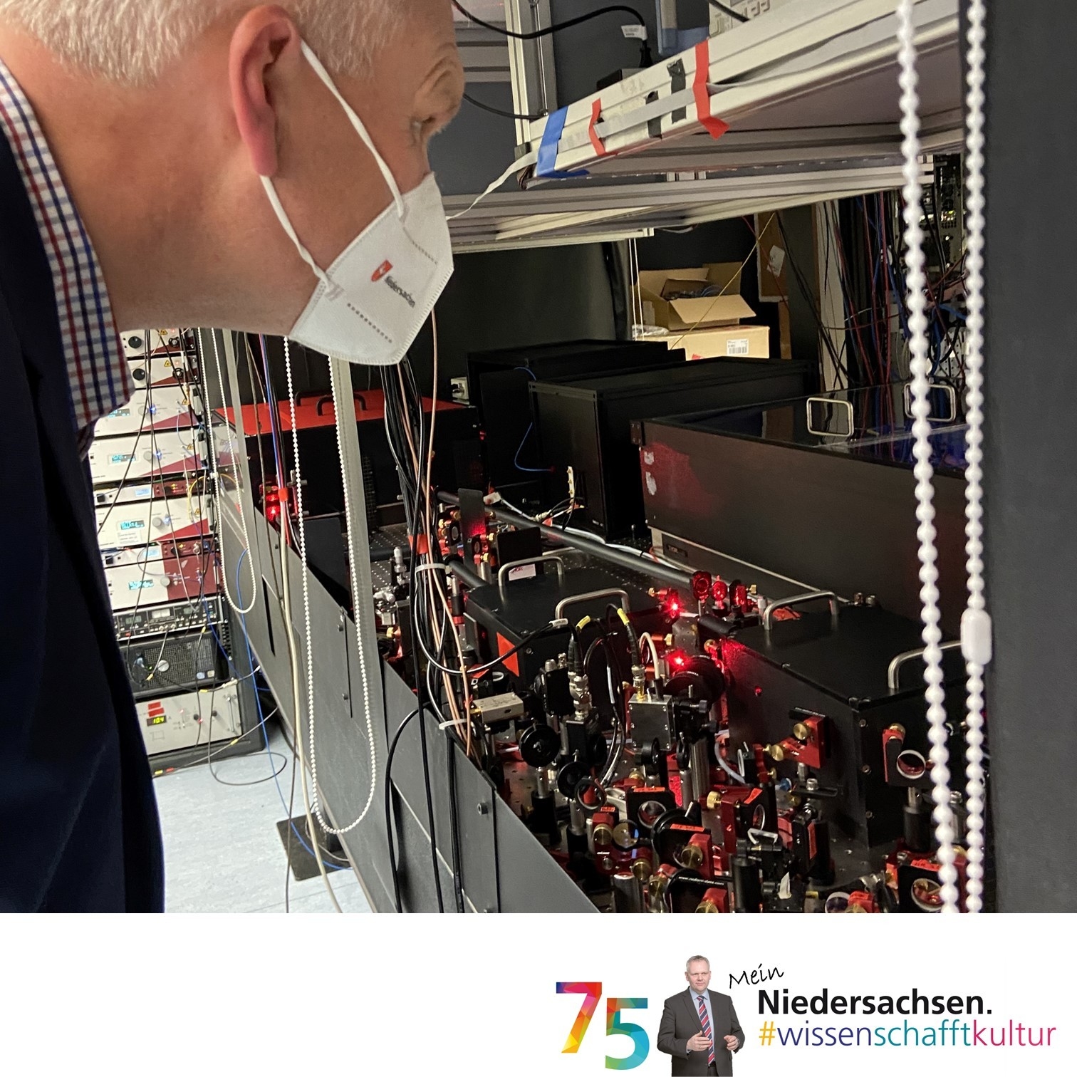 »So unscheinbar und doch ein bedeutsames Puzzleteil einer wissenschaftlichen Weltsensation: Im Januar 2019 besuchte ich einen ganz besonderen Ort der Spitzenforschung made in Niedersachsen – den Gravitationswellen-Detektor GEO600. Forscherinnen und Forscher der Leibniz Universität Hannover und der Max-Planck-Gesellschaft entwickeln und testen dort Laser-Technik, die 2016 maßgeblichen Anteil am spektakulären Nachweis von Gravitationswellen hatte. Prof. Dr. Karsten Danzmann, Direktor des Albert-Einstein Instituts der Max-Planck-Gesellschaft und Leiter des Instituts für Gravitationsphysik an der Leibniz Universität Hannover, ist eine Schlüsselfigur der weltweiten Gravitationsphysik und ein herausragender Botschafter für den Wissenschaftsstandort Niedersachsen. Ein Jahrhundert, nachdem Albert Einstein die Existenz von Gravitationswellen vermutete, lässt sich auch Dank niedersächsischer Spitzenforschung sagen: Einstein hatte recht.«