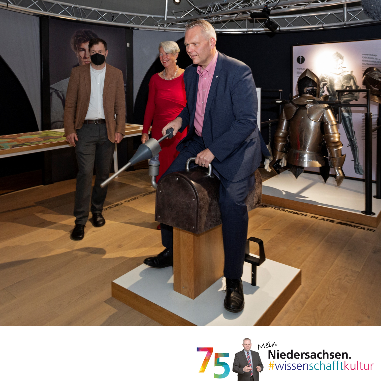 »Ein Museum soll Kulturgut bewahren, erforschen und vermitteln. Das gelingt dann besonders gut, wenn ein Museum zum spannenden Lernort wird, an dem sich moderne und ansprechende Formen der Präsentation und Vermittlung mit dem Zeigen originaler Exponate verbinden. Das Niedersächsische Landesmuseum Hannover beschreitet diese spannenden und innovativen Wege, um Menschen jeglichen Alters für ihre Museumswelt – die im Fall des Landesmuseums sogar drei Welten umfasst – zu begeistern. So wie mich, als ich mich zum Auftakt der Schau „Ritter und Burgen“ in den Sattel eines Schlachtrosses schwang, um mit der faszinierenden Mitmachausstellung auf eine Zeitreise ins Mittelalter zu gehen.«