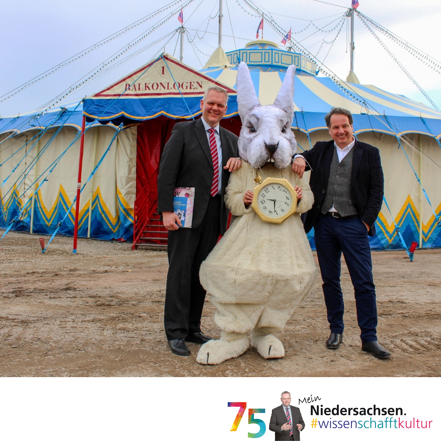 »Bei Alice im Wunderland ist der Märzhase der Gastgeber der Tee-Partys des verrückten Hutmachers. Mich hieß das stets nervöse Langohr im Frühjahr 2018 allerdings nicht zu einer Tee-Party im Wunderland willkommen, sondern an einem anderen nicht minder bunten Ort: dem Theaterhafen in Oldenburg. Dort, wo bis 2016 Schotter- und Kiesberge auf die Verschiffung gewartet hatten, hatte das Oldenburger Staatstheater mit viel Engagement, Liebe zum Detail, Ideen- und Fantasiereichtum ein soziales und kulturelles Zentrum auf Zeit an die Hunte gezaubert. Vor dem Hintergrund von Sanierungsarbeiten unter anderem im Foyer des großen Hauses hatte das Staatstheater auf kreative Weise aus der Not eine Tugend gemacht, die Kunst- und Kulturstadt Oldenburg um eine kunterbunte Facette bereichert und sich als einfallsreiches Theater einem breiten Publikum präsentiert. Angesichts der einzigartigen Atmosphäre dieses Theaterhafens, fühlte man sich an der Hunte wie in einer anderen Welt – kein Wunder also, dass ich dem Märzhasen begegnete.«