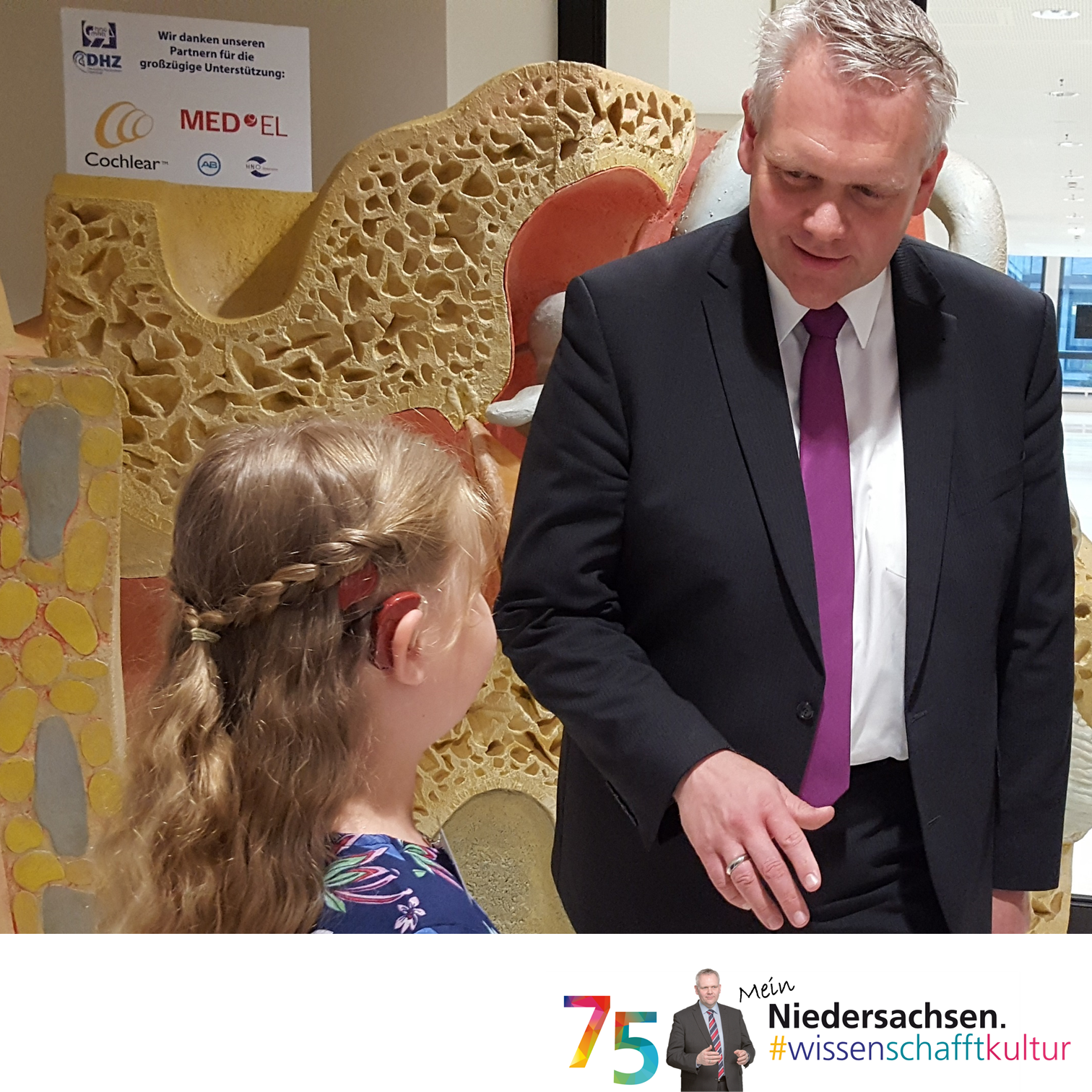»Menschen mit Hörbeeinträchtigungen stehen in Alltag, Beruf und Freizeit permanent vor großen Herausforderungen. Unsere Informations- und Kommunikationsgesellschaft steckt gerade für sie voller Barrieren. Der heutige Tag des Hörens macht auf die Bedeutung des Gehörs und die Auswirkungen von Hörverlust aufmerksam. Tagtäglich setzen sich Wissenschaftlerinnen und Wissenschaftler in Niedersachsen dafür ein, mit einer Vielzahl unterschiedlicher Entwicklungen, Menschen mit Hörstörungen oder komplettem Hörverlust zu helfen. Die Hals-Nasen-Ohrenklinik der Medizinischen Hochschule Hannover und das Deutsche HörZentrum Hannover sowie die im Exzellenzcluster „Hearing4all“ gemeinsam forschenden niedersächsischen Institutionen sind daher nicht nur für mich besondere Orte der Wissenschaft, sondern insbesondere für jene Menschen, für die durch die breite Expertise – von der Grundlagenforschung über Ingenieurwissenschaften und maschinellem Lernen bis hin zur klinischen Medizin - ermöglicht wird, die individuellen Ursachen der Hörbeeinträchtigung zu ermitteln und personalisierte Therapien zu entwickeln.«