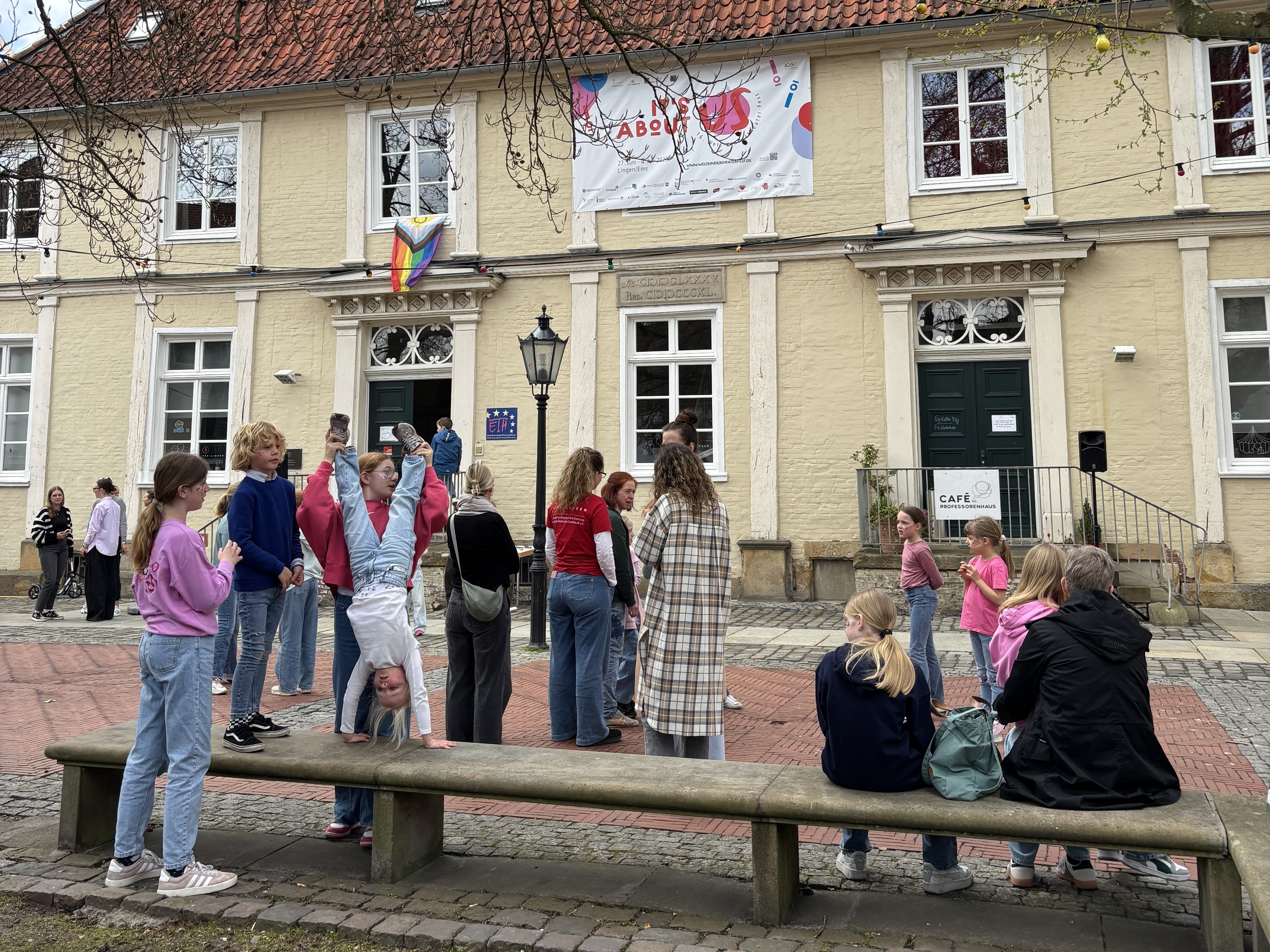 Besuch im Theaterpädagogischen Zentrum Lingen: Es ist das älteste und größte Zentrum seiner Art in Deutschland. Es bietet Kurse, Seminare und Workshops in vier Bereichen: Theater, Spiel, Tanz und Zirkus. Außerdem richtet das Zentrum dieses Jahr das Welt-Kindertheater-Fest aus, bei dem Kinder aus aller Welt gemeinsam Theater spielen.