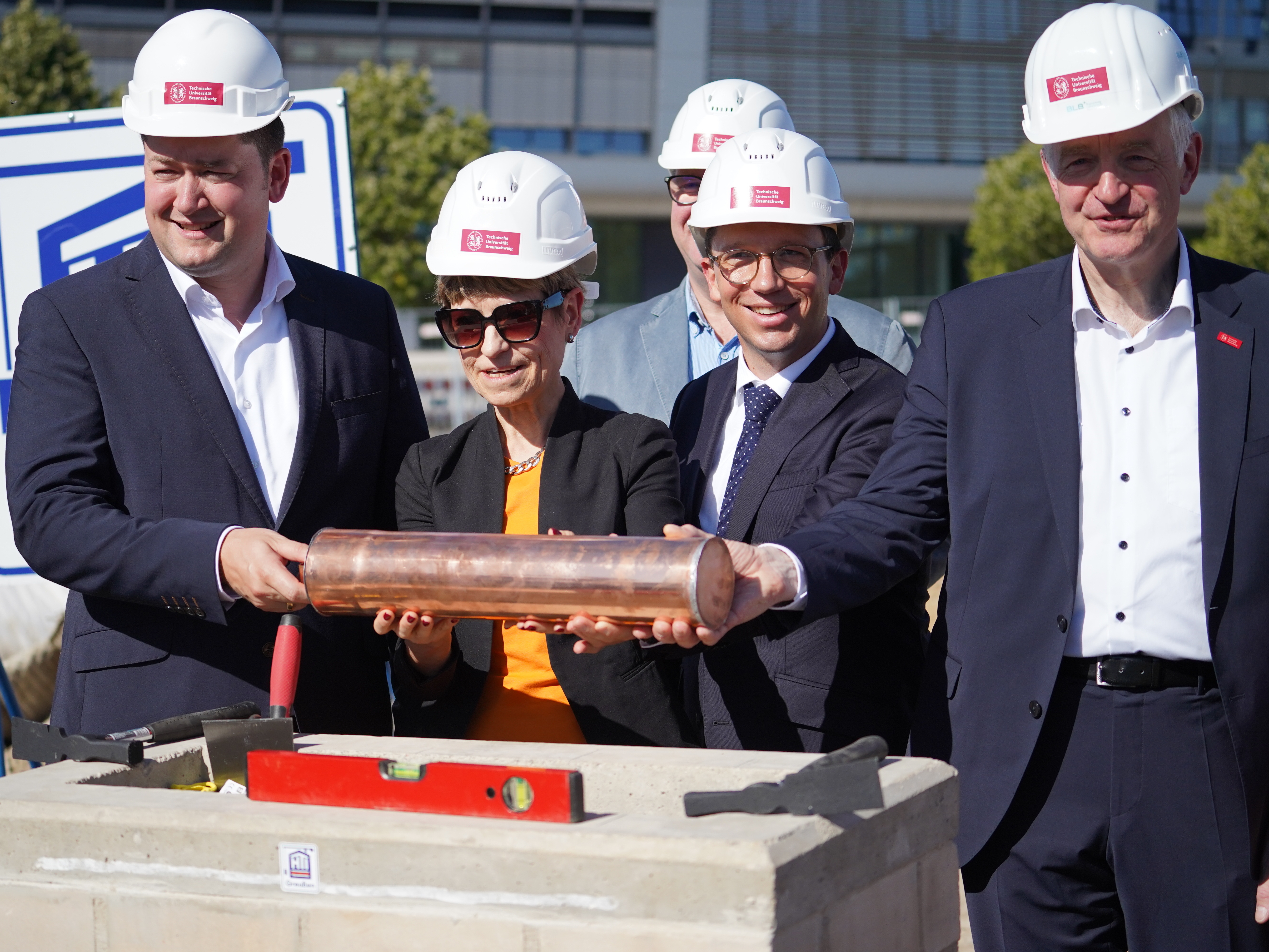 An der Technischen Universität Brauschweig hat Niedersachsens Wissenschaftsminister Falko Mohrs an der Grundsteinlegung des neuen Forschungsbaus Center for Circular Production of Next Batteries and Fuel Cells (CPC) teilgenommen. Die Fertigstellung ist für Ende 2027 geplant. Dann werden Wissenschaftler:innen dort an zirkulären Produktions- und Recyclingprozessen für Batterien und Brennstoffzellen arbeiten.