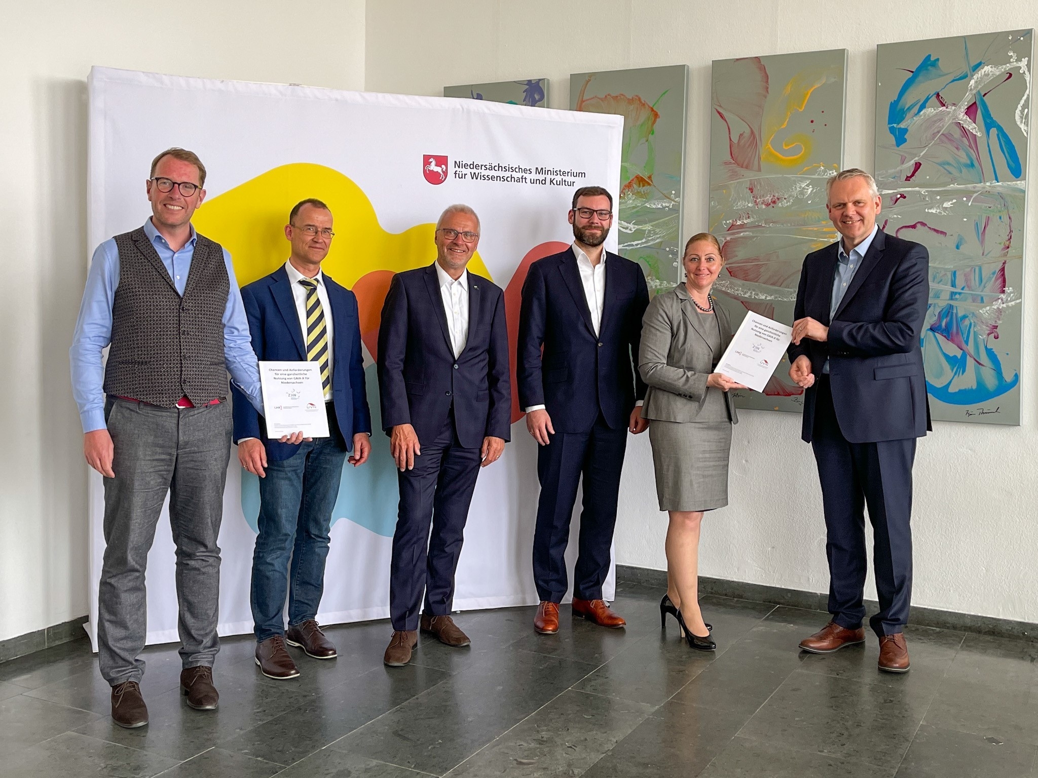 Viele Wissenschaftlerinnen und Wissenschaftler in Niedersachsen und auch niedersächsische Unternehmen sind bereits sehr aktiv bei Gaia-X. Das Zentrum für digitale Innovationen Niedersachsen (ZDIN), das die Kräfte in Forschung und Wissenschaft in seinen Zukunftslaboren bündelt und den Transfer in Wirtschaft und Gesellschaft vorantreibt, sieht deshalb große Chancen, Niedersachsen als maßgeblichen Mitgestalter von Gaia-X zu positionieren. Ein entsprechendes Positionspapier haben deshalb Vertreterinnen und Vertreter des ZDIN heute in Hannover an Niedersachsens Wissenschaftsminister Björn Thümler und Digitalisierungsstaatssekretär Stefan Muhle übergeben.