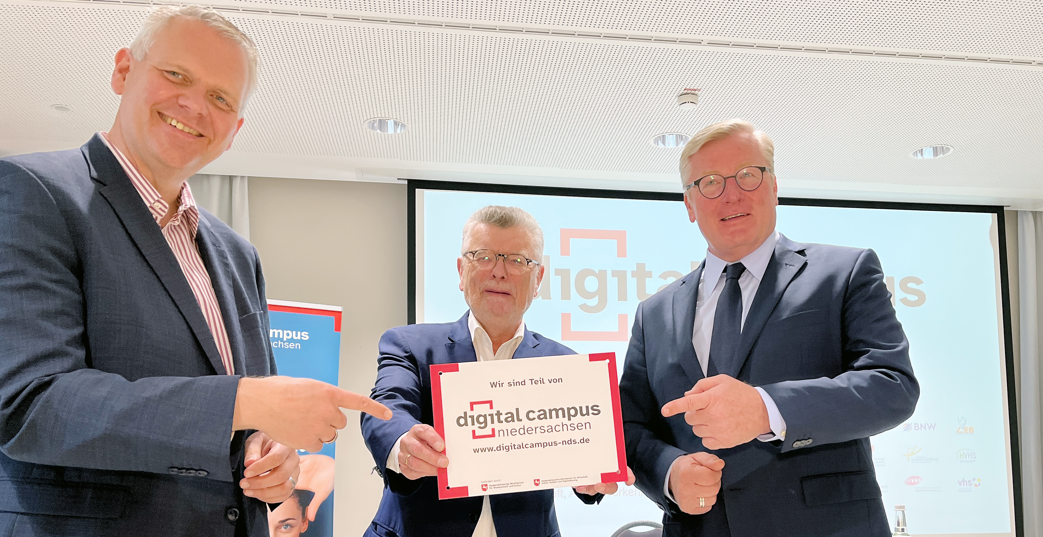 Niedersachsens Minister für Wissenschaft und Kultur Björn Thümler und Dr. Bernd Althusmann, Minister für Wirtschaft, Arbeit, Verkehr und Digitalisierung, haben deshalb heute gemeinsam mit Professor Dr. Gerhard Wegner, dem Vorsitzenden des Niedersächsischen Bundes für freie Erwachsenenbildung, mit dem „Digital Campus Niedersachsen“ eine neue Lernplattform für alle Menschen in Niedersachsen, die sich digital weiterbilden möchten, vorgestellt.