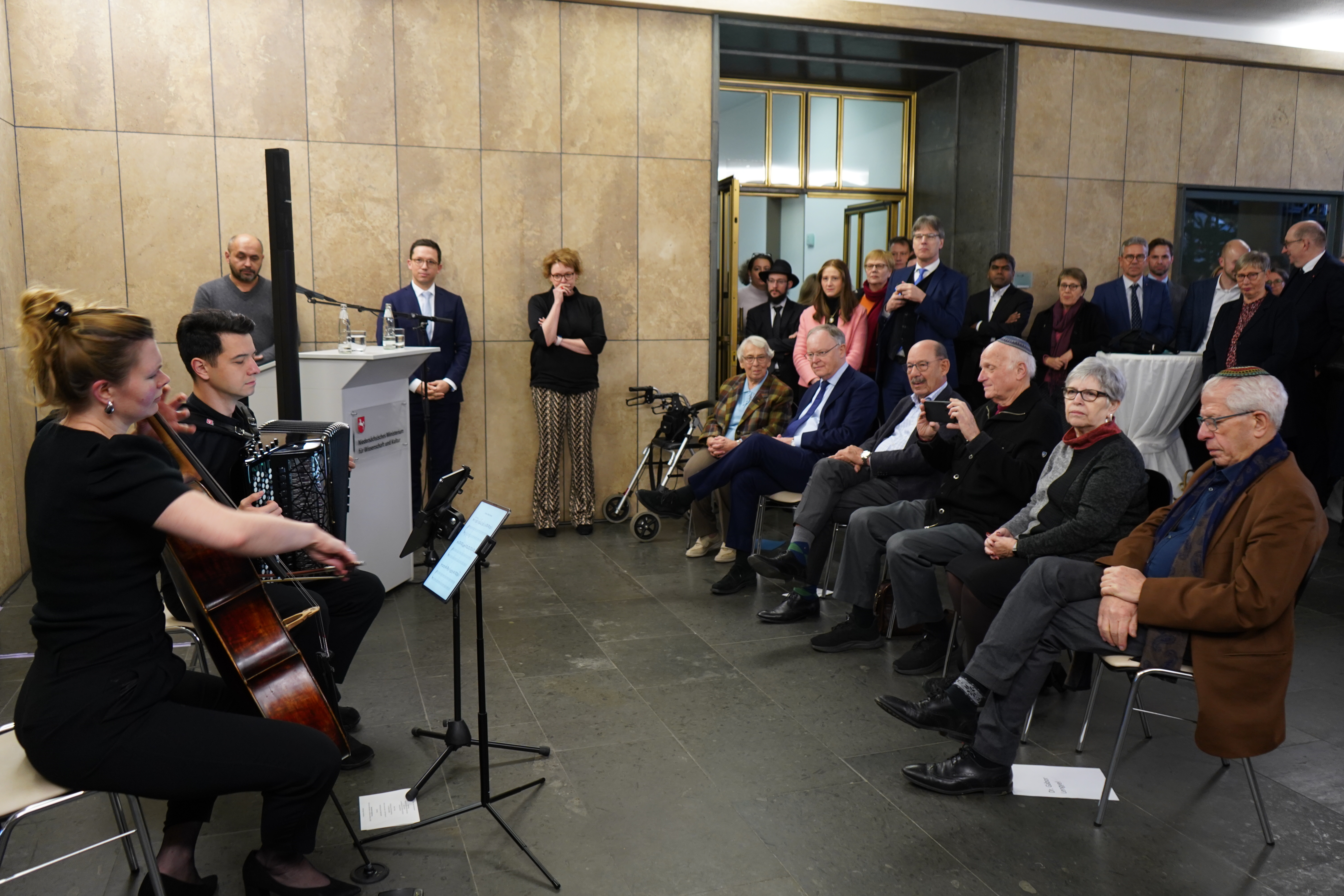 Nun erinnert eine Dauerausstellung im Eingangsbereich des Ministeriums an diese Geschichte. Sie zeigt historische Fotografien und erzählt von den Schicksalen der verfolgten Menschen. Wissenschafts- und Kulturminister Falko Mohrs und Innenministerin Daniela Behrens eröffneten die Installation am heutigen Mittwoch.