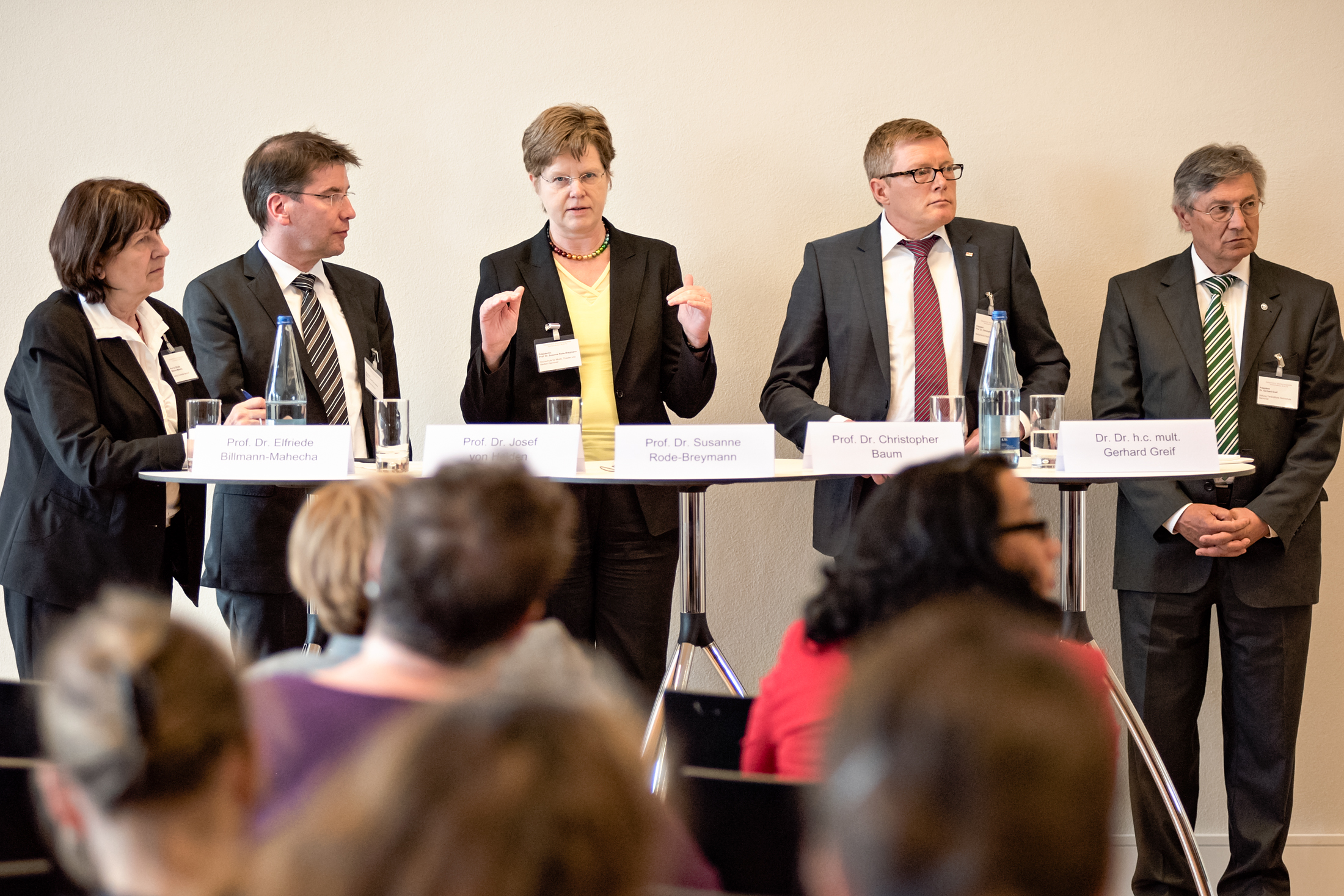 Mit dem workshop „Professorinnen – Positionen – Perspektiven“ am 06.05.2015 im Schloss Herrenhausen wurde das erste von drei Handlungsfeldern aufgegriffen, die innerhalb der Dialoginitiative „Geschlechtergerechte Hochschulkultur“ beleuchtet werden sollen. Rund 100 Teilnehmerinnen und Teilnehmer der niedersächsischen Hochschulen und des Ministeriums für Wissenschaft und Kultur diskutierten über zukunftsweisende Wege zu einer im Sinne der Geschlechtergerechtigkeit erneuerten Hochschulkultur.