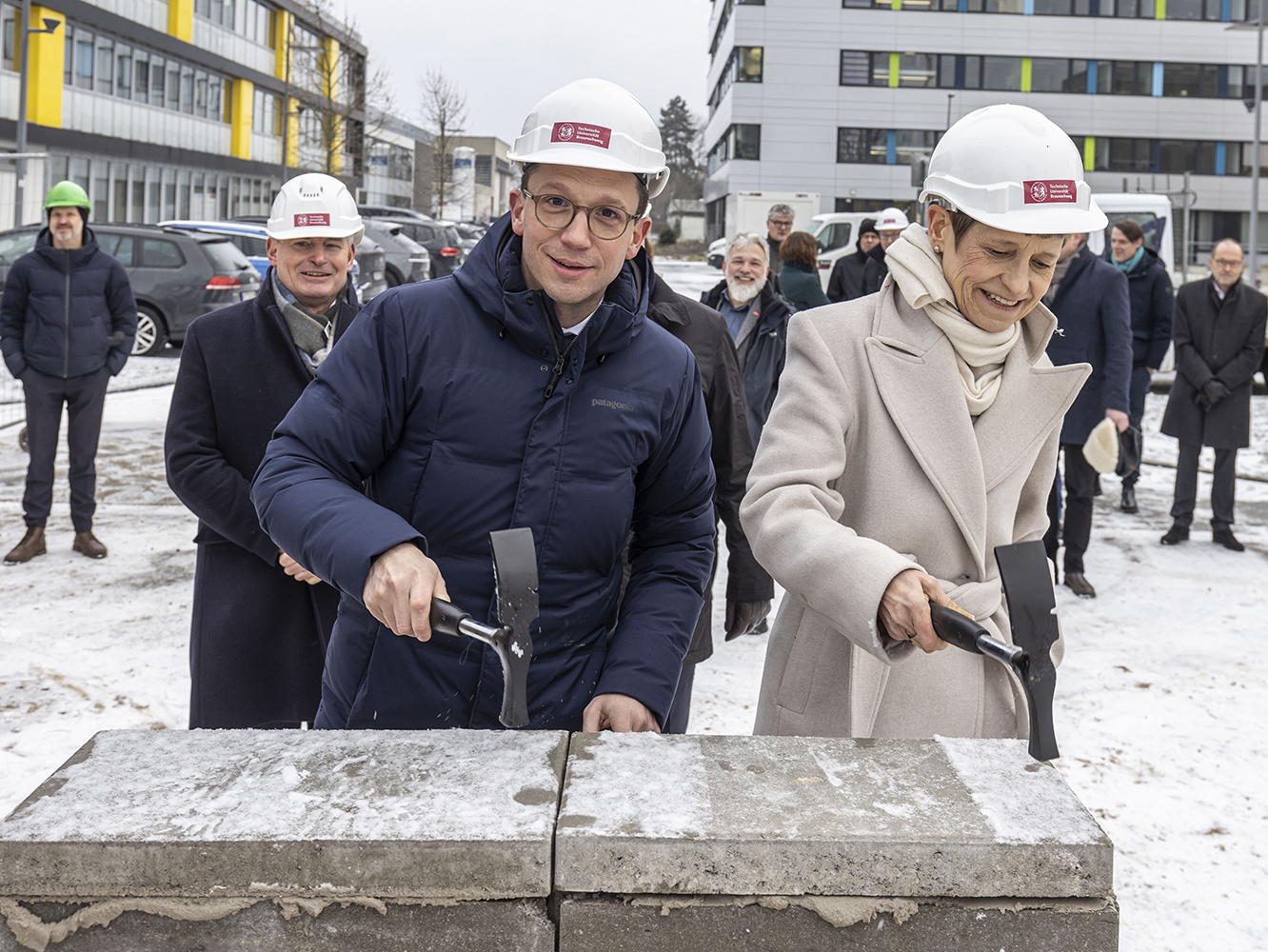 Niedersachsens Wissenschaftsminister Falko Mohrs und TU-Präsidentin Prof. Dr. Angela Ittel haben den symbolischen Grundstein für den Physik-Neubau in Braunschweig gelegt. Rund 72,4 Millionen Euro werden investiert, um Studierenden und Forschenden der Physik hervorragende Bedingungen für Forschung und Lehre in Niedersachsen zu bieten. Das Land Niedersachsen trägt rund 80 Prozent der Kosten, der Eigenanteil der TU Braunschweig beträgt knapp 20 Prozent.